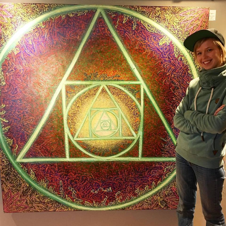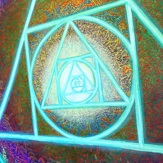 This painting symbolizes that everything is interdependent. It's meant to awaken our awareness of microcosms within macrocosms so we can have a holistic approach to life.